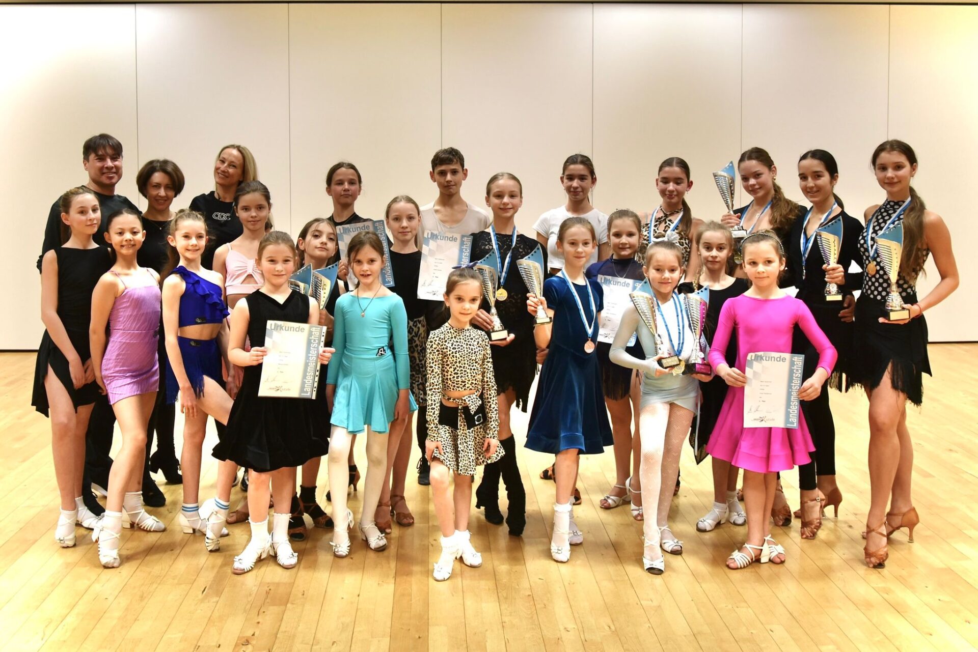 Besonders im Rampenlicht standen unsere Solo-Tänzerinnen bei der Landesmeisterschaft Solo Latein in Königsbrunn. Hier konnten wir gleich mehrere Titel feiern: Anna-Sophie Gradl, Arina Samoilenko und Olena Puzyr dominierten ihre Klassen und kehrten als zweifache Siegerinnen nach Hause zurück. Auch Goluba Iskra, Veronika Puzyr, Yuliana Romanenko und Vitalina Shcherban sicherten sich jeweils einen Platz 1 in ihren Kategorien.