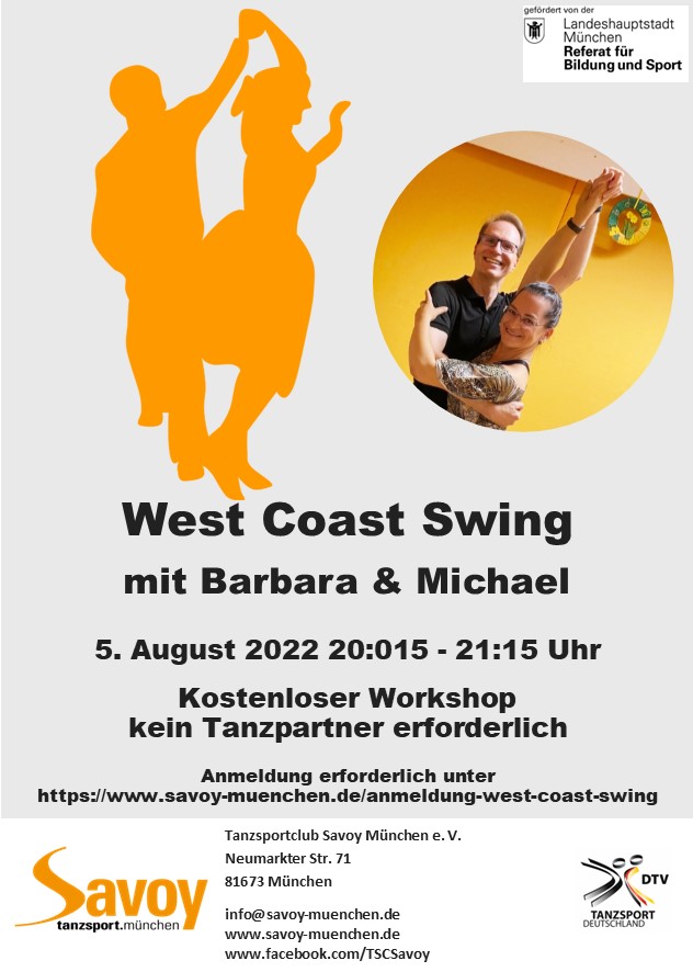 Gruppentraining am Montag, 18. Juli Möglichkeit für Privatstunden am Sonntag, 17. Juli, Montag, 18. Juli und Dienstag, 19. Juli Anmeldung unter: privatstunden-standard@savoy-muenchen.de