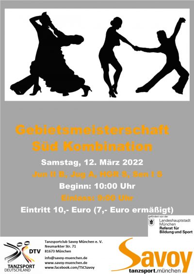 Liebe Tuniertänzer/innen und Tanzbegeisterte, wir freuen uns, die Gebietsmeisterschaft Süd in der Kombination ausrichten zu dürfen. Die aktuelle bayerische Infektionsschutzmaßnahmenverordnung enthält unterschiedliche Regeln für Zuschauer, aktive Sportler und Mitarbeiter. Um zusätzlichen Aufwand beim Zutritt zu vermeiden und zur Verminderung des […]