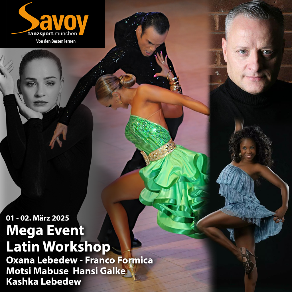 Mega - Event Workshop Wochenende mit Franco Formica, Oxana Lebedew, Motsi Mabuse und Hans Galke Ablauf 01. / 02. März - Beide Tage - ab 10h Privatstunden möglich Privatstunden bei Oxana Lebedew reservieren (Tel: +491797076569) WORKSHOP (Teilnahme pro Tag 100€ […]