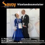 Am 06. September 2025 haben Peter Gruber und Doris Müller die Landesmeisterschaft im Tanzsport in der Klasse Mas III C Std gewonnen und sind damit Landesmeister der Mas III C Standard ! Sie setzten sich gegen 12 andere Paare durch und belegten den ersten Platz. Das Turnier fand unter der Leitung des Landestanzsportverbandes Bayern e.V. in München statt. Es war ein Teil der Landesmeisterschaft Mas III D-S Standard und Hauptgruppe S Standard.